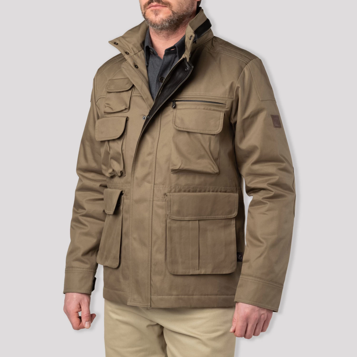 • Made in Portugal Designed with the true adventurer in mind, our Westley Richards Barclay Field Jacket is a refreshing revival of a vintage military classic. Crafted from a robust Italian cotton, insulated with a quilted lining and finished with supple leather trim, only the best fabrics were sourced for this premium piece. Sporting a pocket for every purpose, the Barclay Field Jacket is ideal for on Safari, exotic travels, and everyday adventures.
