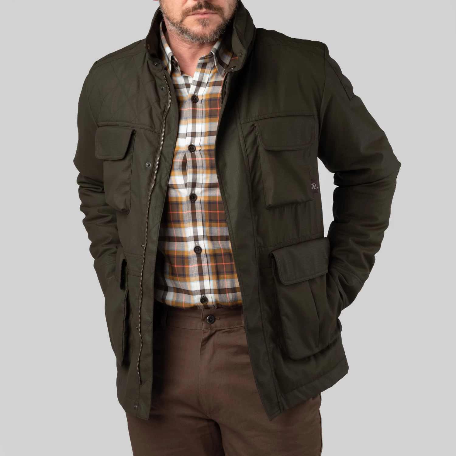 • Made in Portugal The Forsyth Waxed Ripstop Jacket combines the weatherproofing of waxed fabric with the strength of ripstop. A unique fabric boasting the best of both worlds and styled with practicality as paramount. A concealed hood, reinforced elbows, quilted shoulder for mounting your gun, and with a pocket for every purpose, the Forsyth is sure to become your favourite for in the field.