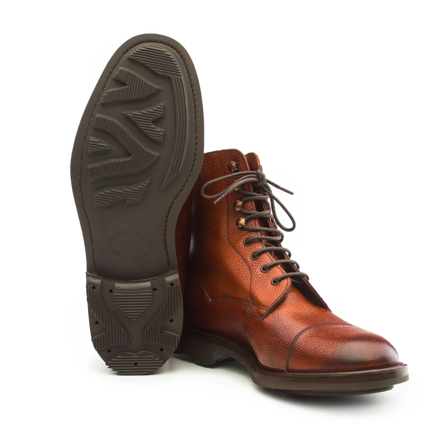 These shoes are formed from a grained calf body leather and moulded to a rubber sole to ensure grip in the wetter conditions.