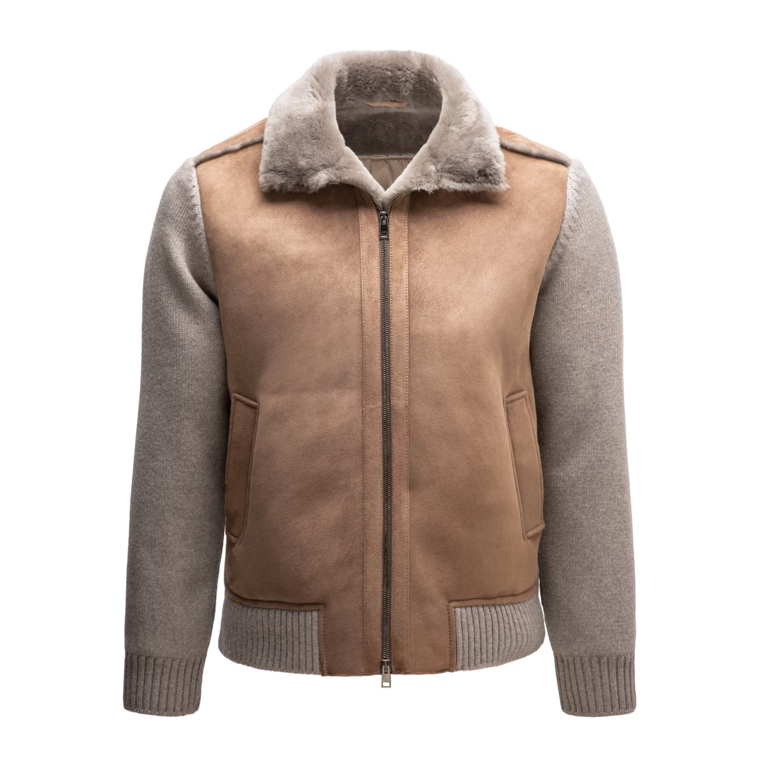 • 100% lambskin suede shearling and knitted wool details The leader in Italian luxury, Marini’s Knitted Jacket with sheepskin details will not go unnoticed. A striking combination of supple shearling and fine wool details creates a refined yet rugged layer for the gentleman with the most discerning taste. Fully lined with a windbreaking interior layer, this clever jacket combines style, warmth and practicality.